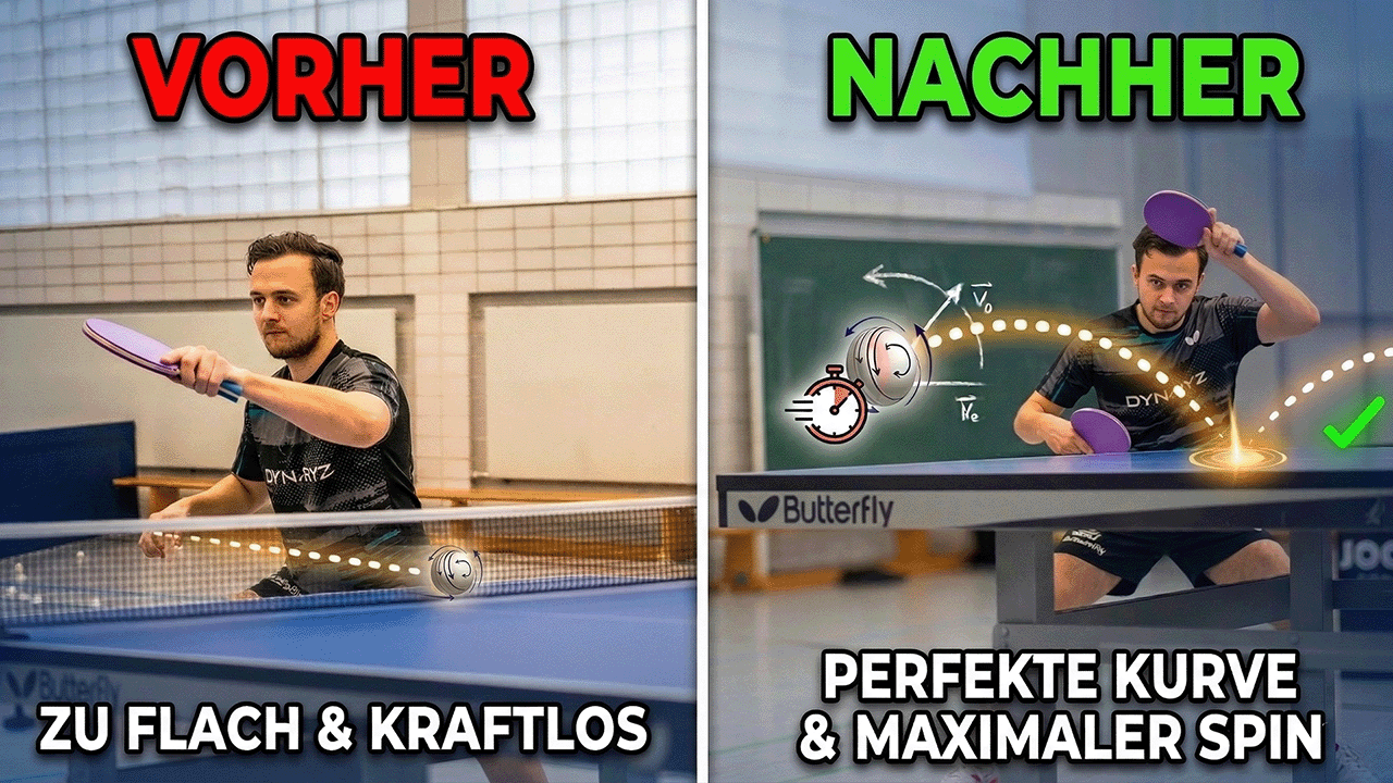 Praxis-Tipp für dein nächstes Training: Stell dir ein kleines Hindernis (z. B. einen aufgestellten Balleimer oder einen Karton) auf deine Tischhälfte. Versuche nun, den Ball mit einer deutlichen Kurve über dieses Hindernis hinweg zu ziehen. So lernst du ganz automatisch, den Ball mehr von unten nach oben zu streifen und weniger Tempo, aber dafür massiv mehr Rotation zu erzeugen.
